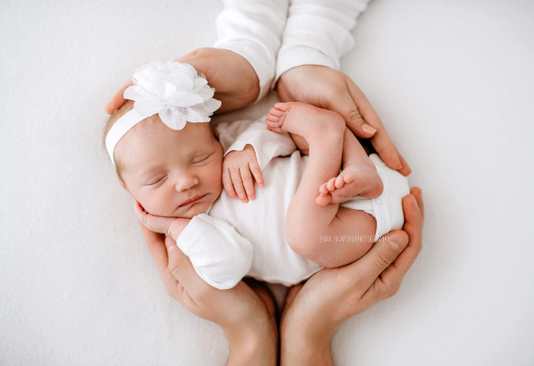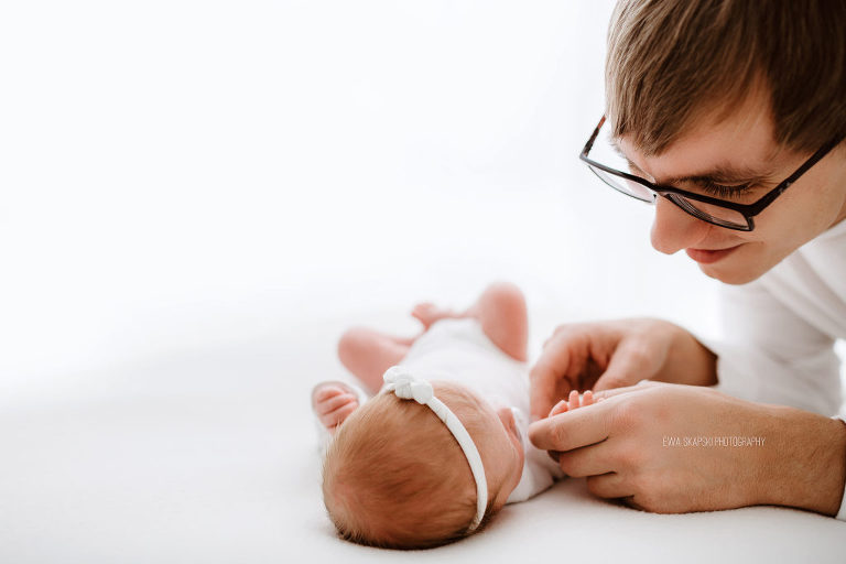 My heart always skips a bit when my clients pick the white timeless newborn session for their little ones. You may wonder, why? It is just a personal preference I guess. Over the years I accumulated tons of props for newborn and babies, any color of blankets, outfits, hats, backdrops… you name it. But in the end, my heart always migrated towards something simpler. My minimalistic white sessions are the answer to that. I simply adore the simplicity. These sessions are simply about the baby. And partially about YOU and the baby :). You can’t forget about yourself… All new parents tend to focus mostly on the baby, which is so sweet. But let me tell you something, your precious newborn baby will grow up one day and I can assure you – she or he will look back at the images and cherish them forever, especially the ones with you in them!